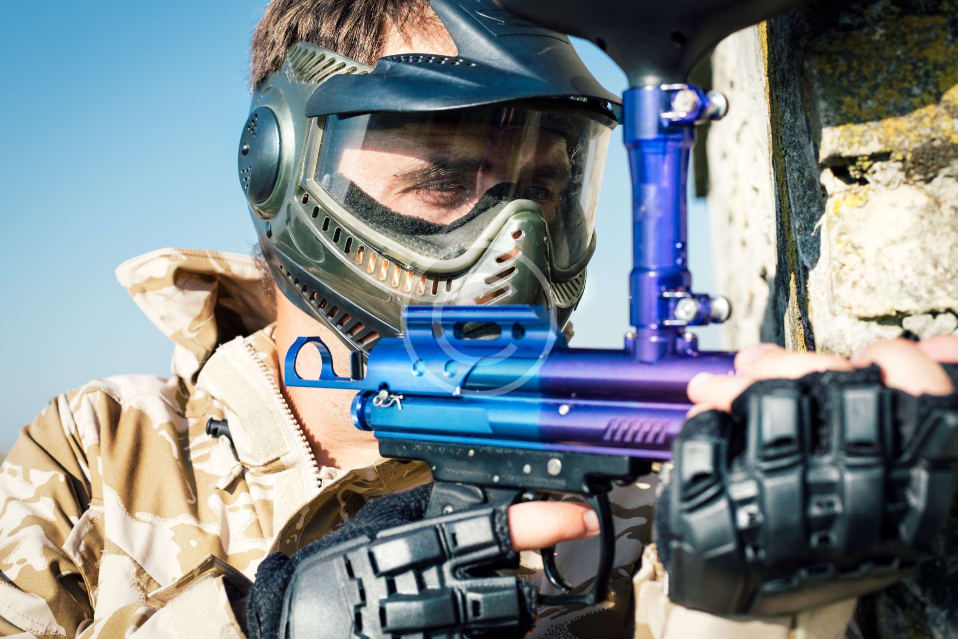 - Includes All Day Play, Rental Rifle, Safety Mask, Safety Vest, 500 paintballs